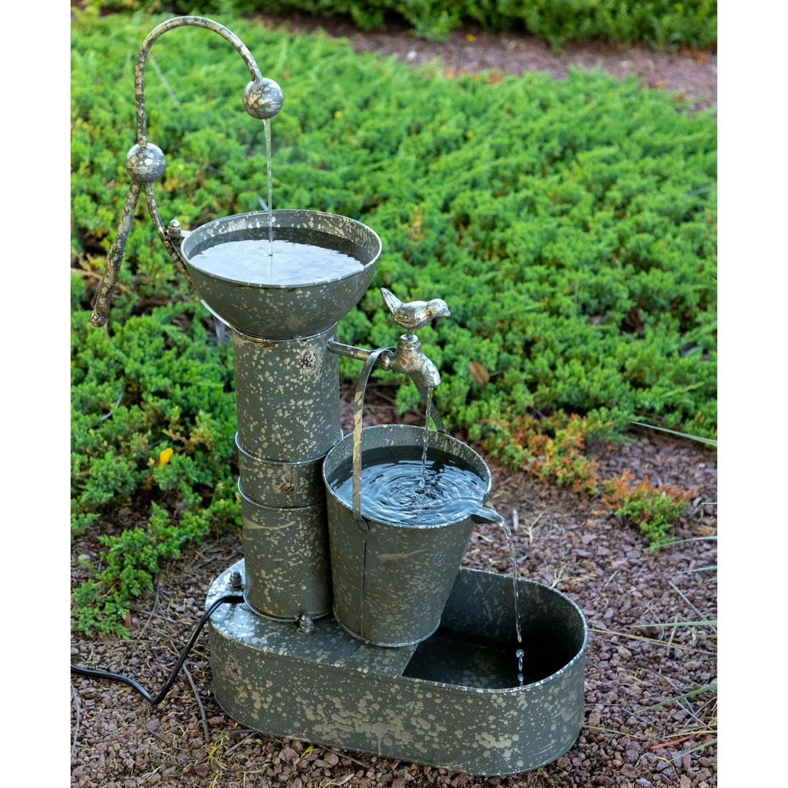 Cheap 👍 Alpine Rustic Metal Tiering Water Pump Fountain 💯
