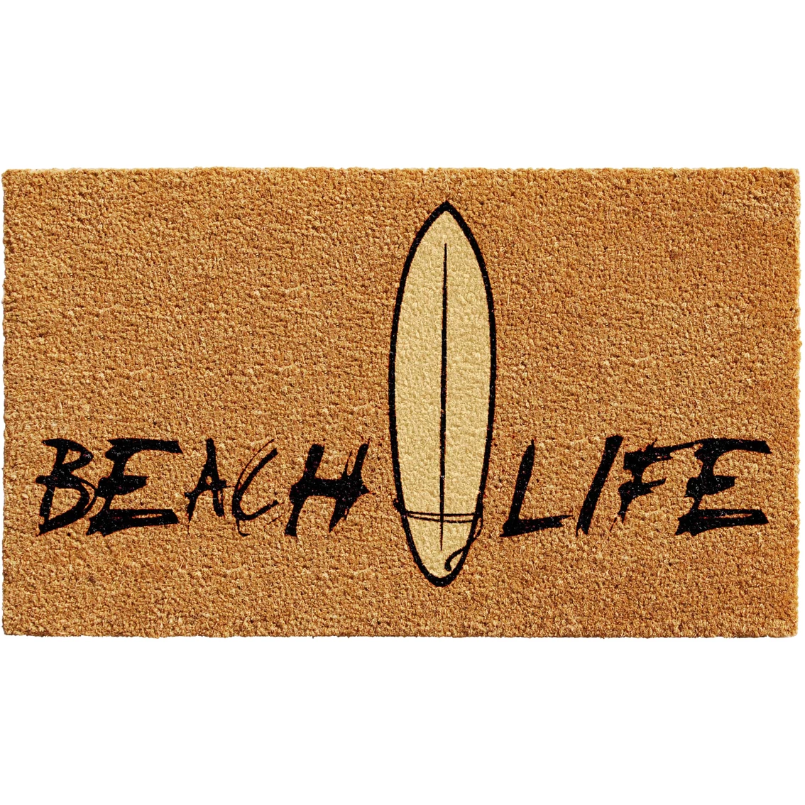 The Callowaymills Beach Life Doormat is an all season colorfast and weather mat. Made of natural coir, a renewable resource that is durable and coarse, excellent for scraping shoes clean. Vinyl backed for increased durability and to help prevent movement. Coir doormats are weather tolerant absorb moisture and retain their shape. 17 x 29 inches. Model: 102331729.