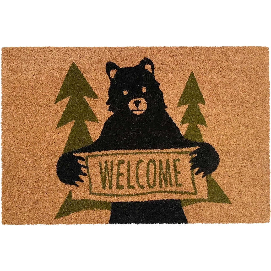 Calloway Mills Bear Greeting Doormat is made of natural coir. Coir is a renewable resource that is durable and coarse, excellent for scraping shoes clean. Vinyl backed for increased durability and to help prevent movement, coir doormats are weather tolerant absorb moisture and retain their shape. All season colorfast. Measures 17 x 29 in. Model: 122261729.