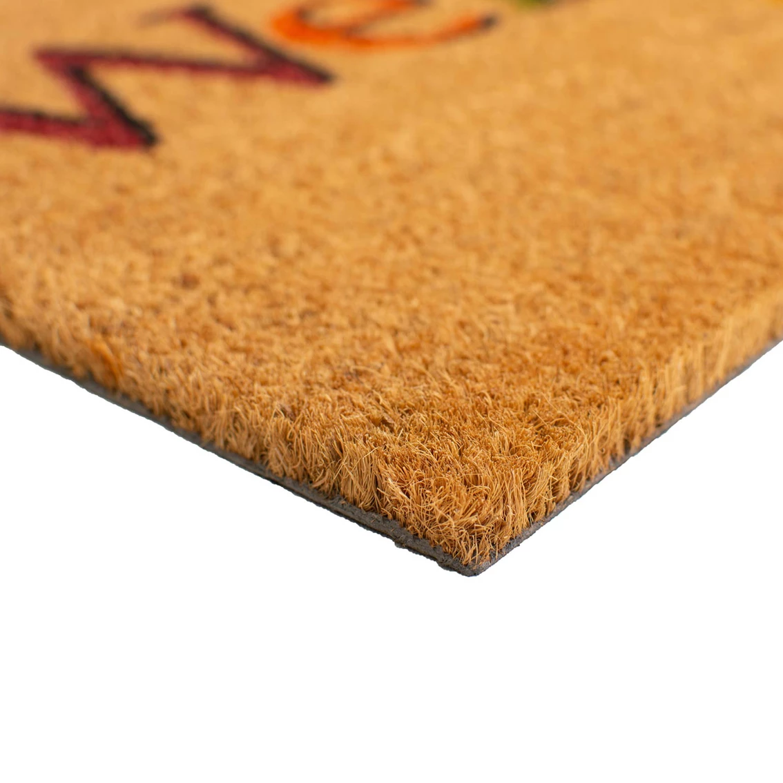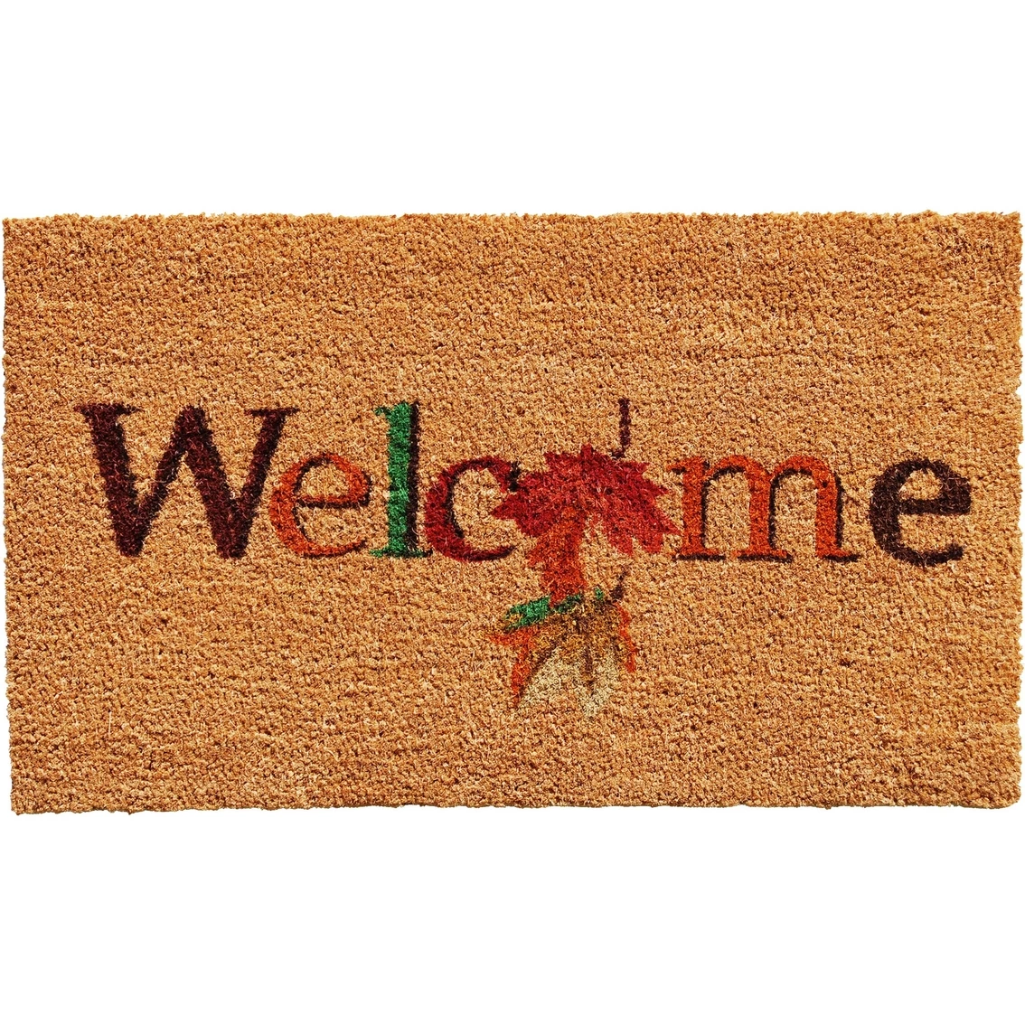 Welcome the beauty of fall with this doormat from Calloway Mills. Made of natural coir, a dense fiber that is naturally mold and mildew resistant. Coir is a renewable resource that is durable and coarse, excellent for scraping shoes clean. Vinyl backed for increased durability and to help prevent movement, coir doormats are weather tolerant absorb moisture and retain their shape. For best results keep in a sheltered area such as a covered porch, keeping extreme moisture and sunlight to a minimum. Vacuum, sweep or lightly hose clean. Model: 121301729.