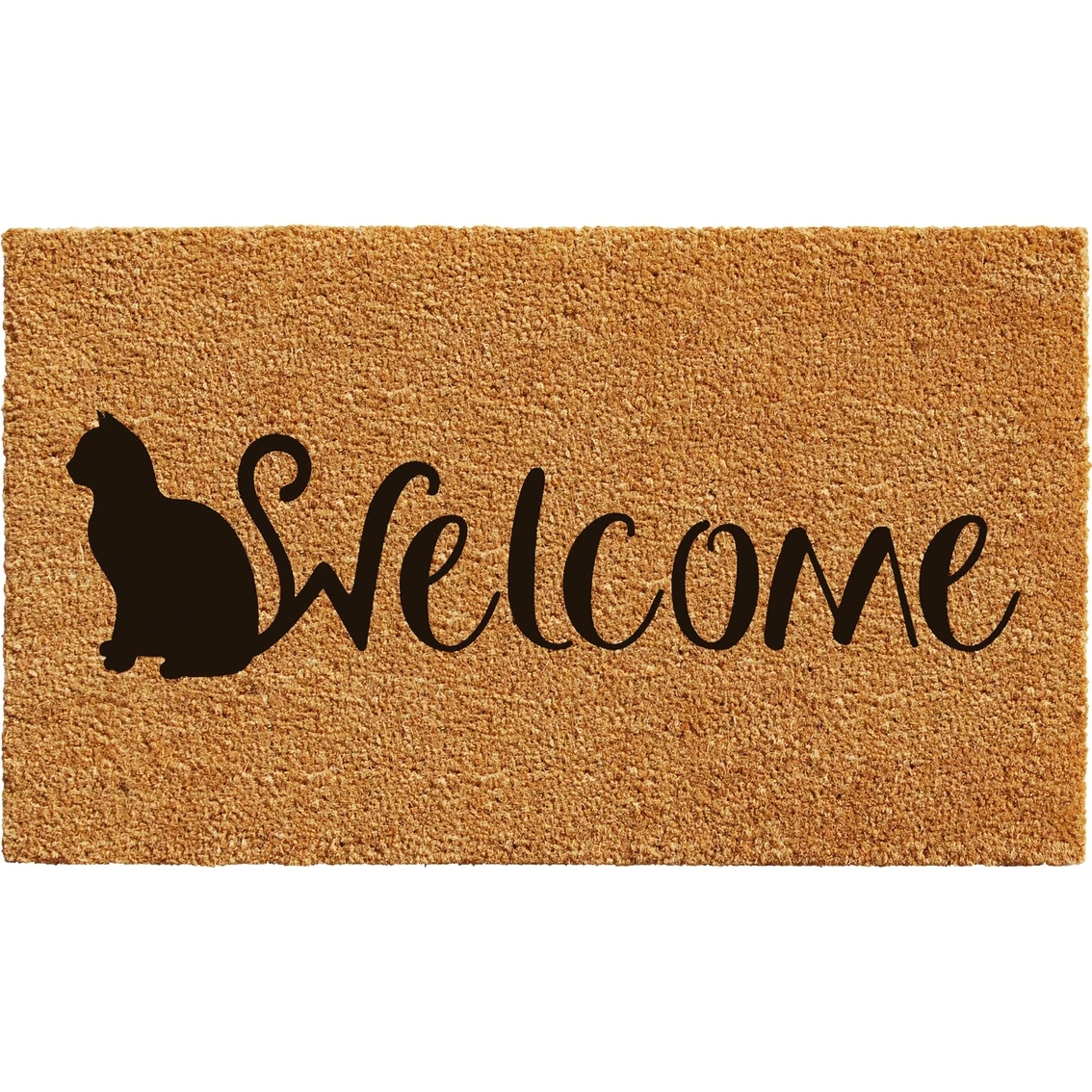 Show that cats are welcome with this friendly doormat from Calloway Mills. Made of natural coir, a dense fiber that is naturally mold and mildew resistant. Coir is a renewable resource that is durable and coarse, excellent for scraping shoes clean. Vinyl backed for increased durability and to help prevent movement, coir doormats are weather tolerant absorb moisture and retain their shape. For best results keep in a sheltered area such as a covered porch, keeping extreme moisture and sunlight to a minimum. Vacuum, sweep or lightly hose clean. Model: 102161729.