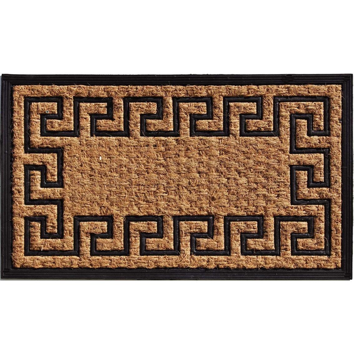 This doormat from Calloway Mills is made of natural coir. Coir is a renewable resource that is durable and coarse, excellent for scraping shoes clean. Vinyl backed for increased durability and to help prevent movement, coir doormats are weather tolerant absorb moisture and retain their shape. All-season colorfast and weather tolerant, durable coir that scrapes shoes clean, vinyl backing to help prevent movement. Model: 280001.