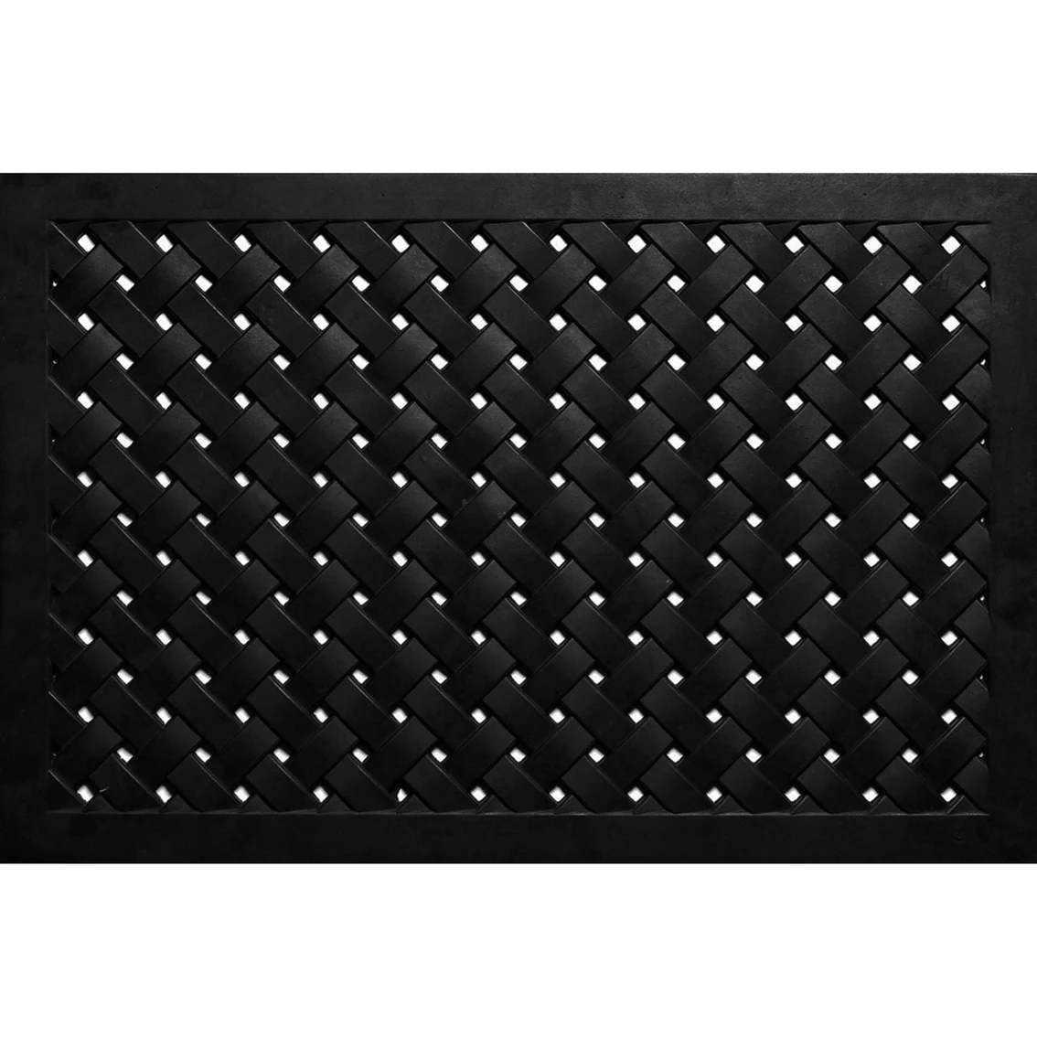 Made of 100% rubber, this Calloway Mills heavy-duty weave patterned doormat stands up to traffic and provides resilient coverage at your entry. Extremely durable, this mat is self-draining, weather tolerant and won’t mold or mildew. Hose clean. Measures 18 x 30 inches. Model: 900071830.