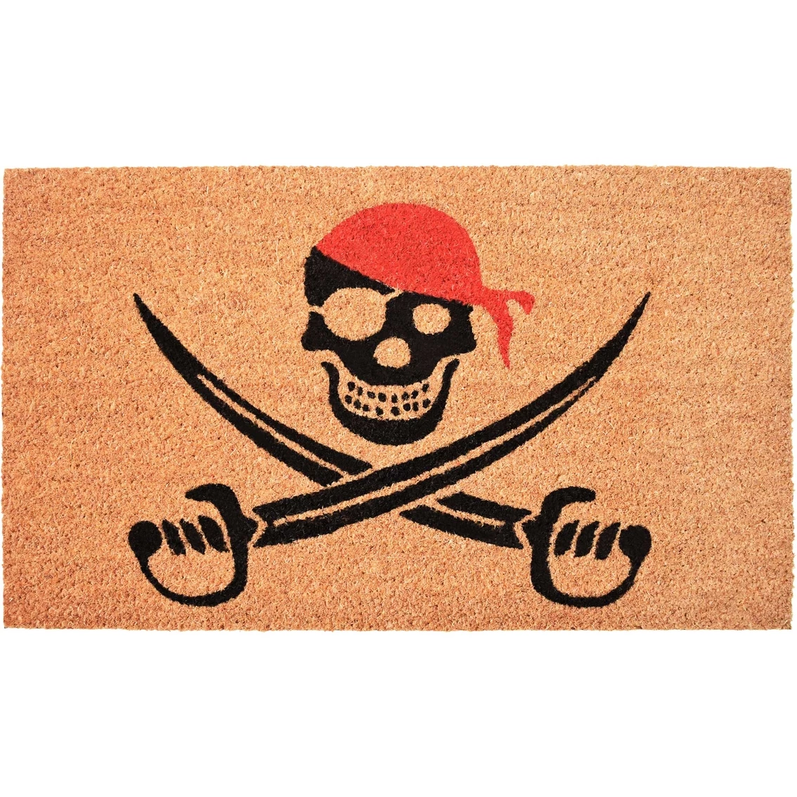 All-season colorfast and weather tolerant, this Pirate 17 x 29 in. Doormat from Calloway Mills is made of durable coir that scrapes shoes clean. A vinyl backing helps prevent movement.