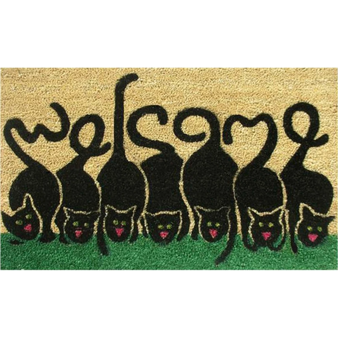 The Callowaymills Cats Welcome Doormat is an all season colorfast and weather mat. Made of natural coir, a renewable resource that is durable and coarse, excellent for scraping shoes clean. Vinyl backed for increased durability and to help prevent movement. Coir doormats are weather tolerant absorb moisture and retain their shape. 17 x 29 inches. Model: 120391729.