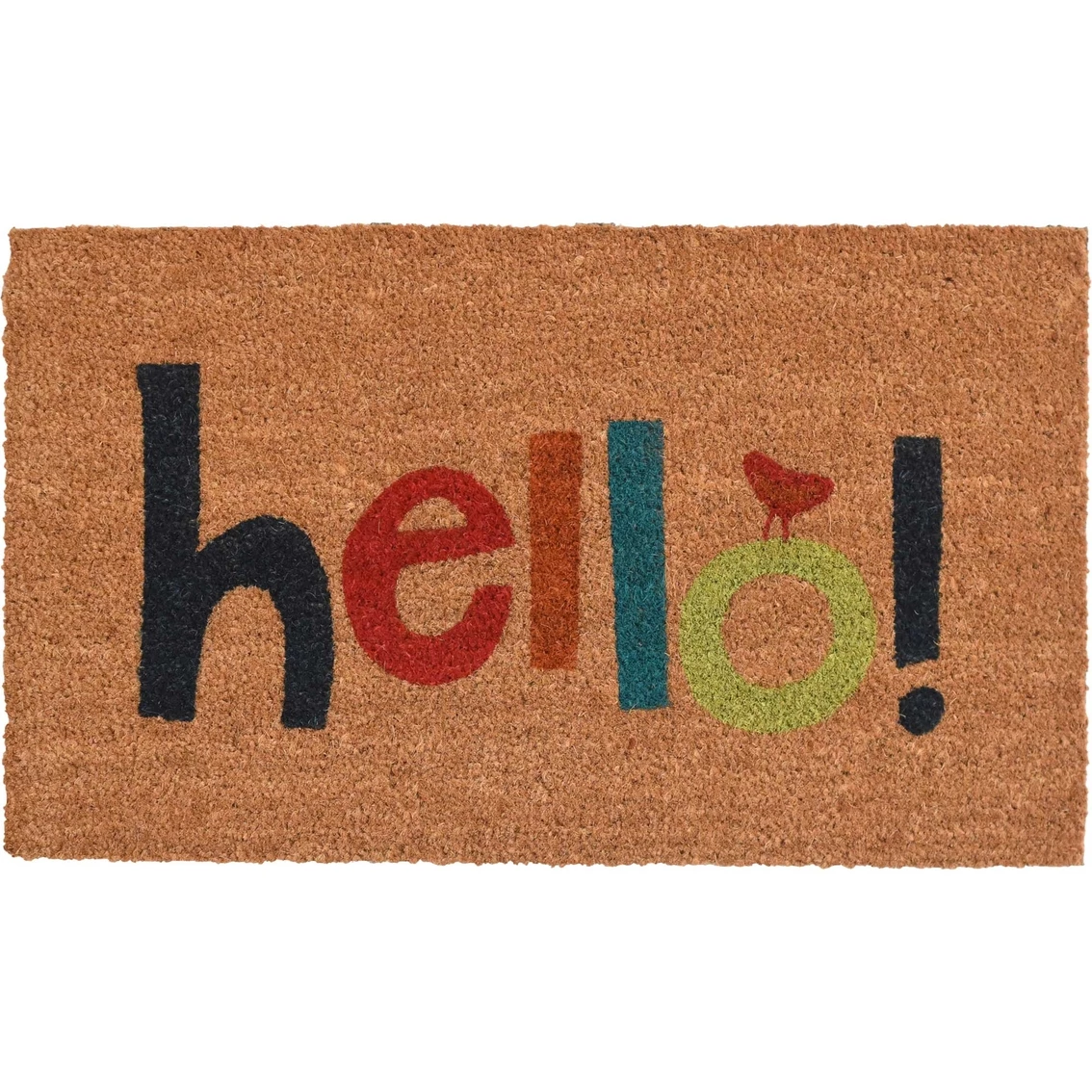 The Callowaymills Colorful Hello Doormat is an all season colorfast and weather mat. Made of natural coir, a renewable resource that is durable and coarse, excellent for scraping shoes clean. Vinyl backed for increased durability and to help prevent movement. Coir doormats are weather tolerant absorb moisture and retain their shape.17 x 29 inches. Model:102771729.