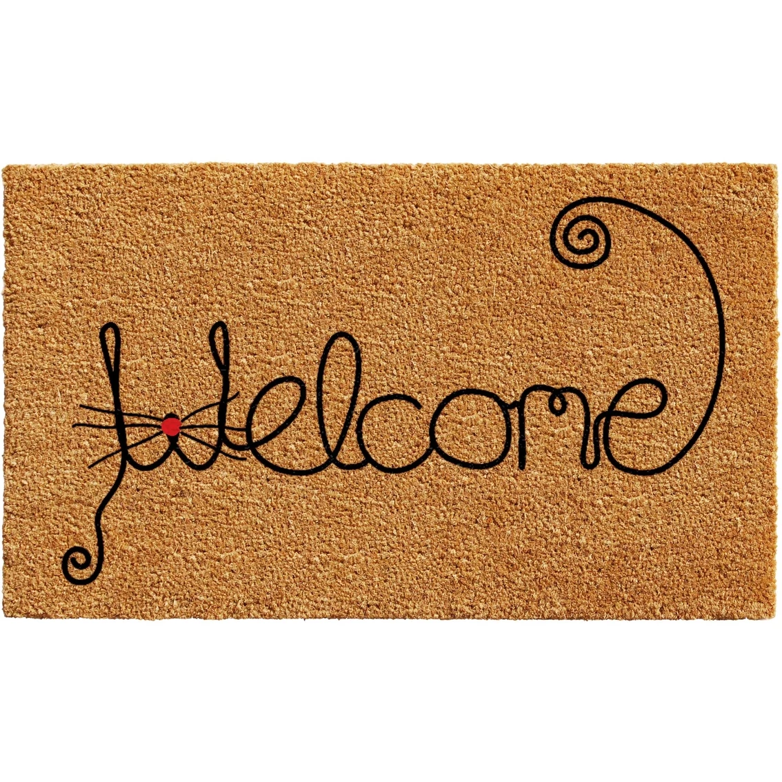 The Callowaymills Kitty Curlicue Doormat is an all season colorfast and weather mat. Made of natural coir, a renewable resource that is durable and coarse, excellent for scraping shoes clean. Vinyl backed for increased durability and to help prevent movement. Coir doormats are weather tolerant absorb moisture and retain their shape. 17 x 29 inches. Model: 102521729.