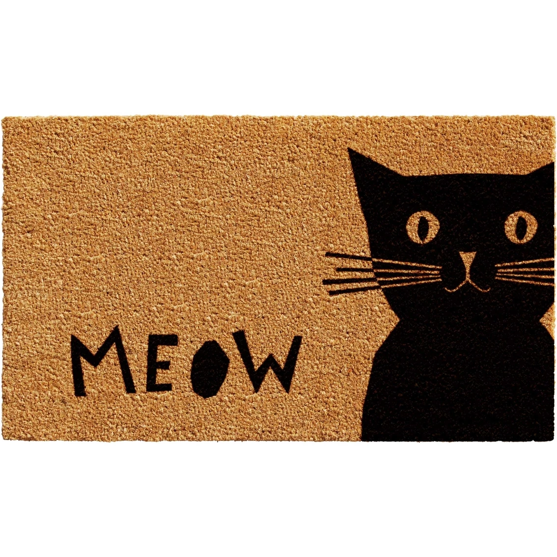 The Callowaymills Meow Doormat is an all season colorfast and weather mat. Made of natural coir, a renewable resource that is durable and coarse, excellent for scraping shoes clean. Vinyl backed for increased durability and to help prevent movement. Coir doormats are weather tolerant absorb moisture and retain their shape. 17 x 29 inches. Model: 102551729.