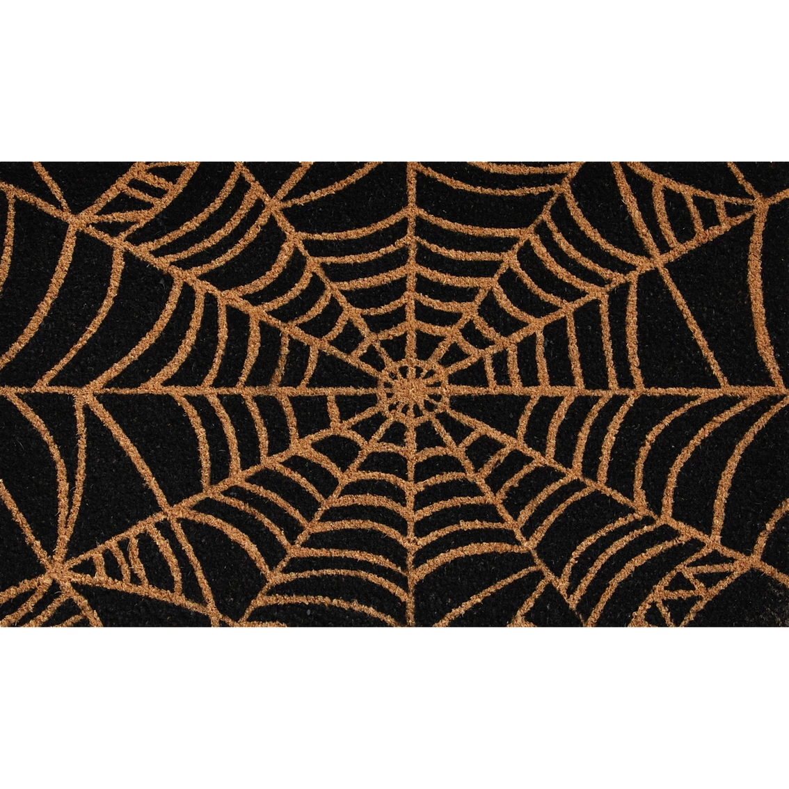 Callowaymills Scary Web 17 x 29 in. Doormat is made of natural coir, a dense fiber that is naturally mold and mildew resistant. Coir is a renewable resource that is durable and coarse, excellent for scraping shoes clean. Vinyl backed for increased durability and to help prevent movement, this coir doormat is weather tolerant, absorb moisture and retain their shape. For best results keep in a sheltered area such as a covered porch, keeping extreme moisture and sunlight to a minimum. Vacuum, sweep or lightly hose clean. Model: 101951729.