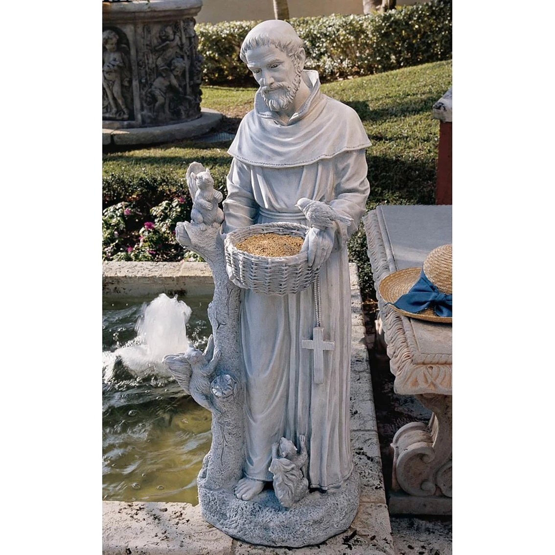 Cultivate your spiritual garden with the patron saint of nature with birds, squirrels, and other friends of the forest scampering playfully at his feet. St. Francis lends peaceful serenity to your home or garden sanctuary. At more than three feet tall, this classic, Toscano-exclusive sculpture is fraught with quality designer resin details, from the cross-hung from his belt to the benevolent expression of one at peace with his Maker’s creatures.