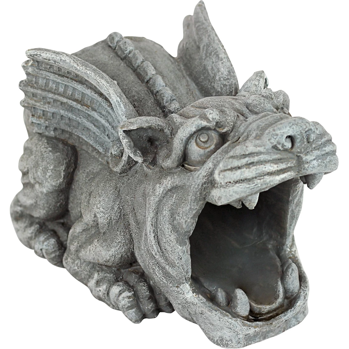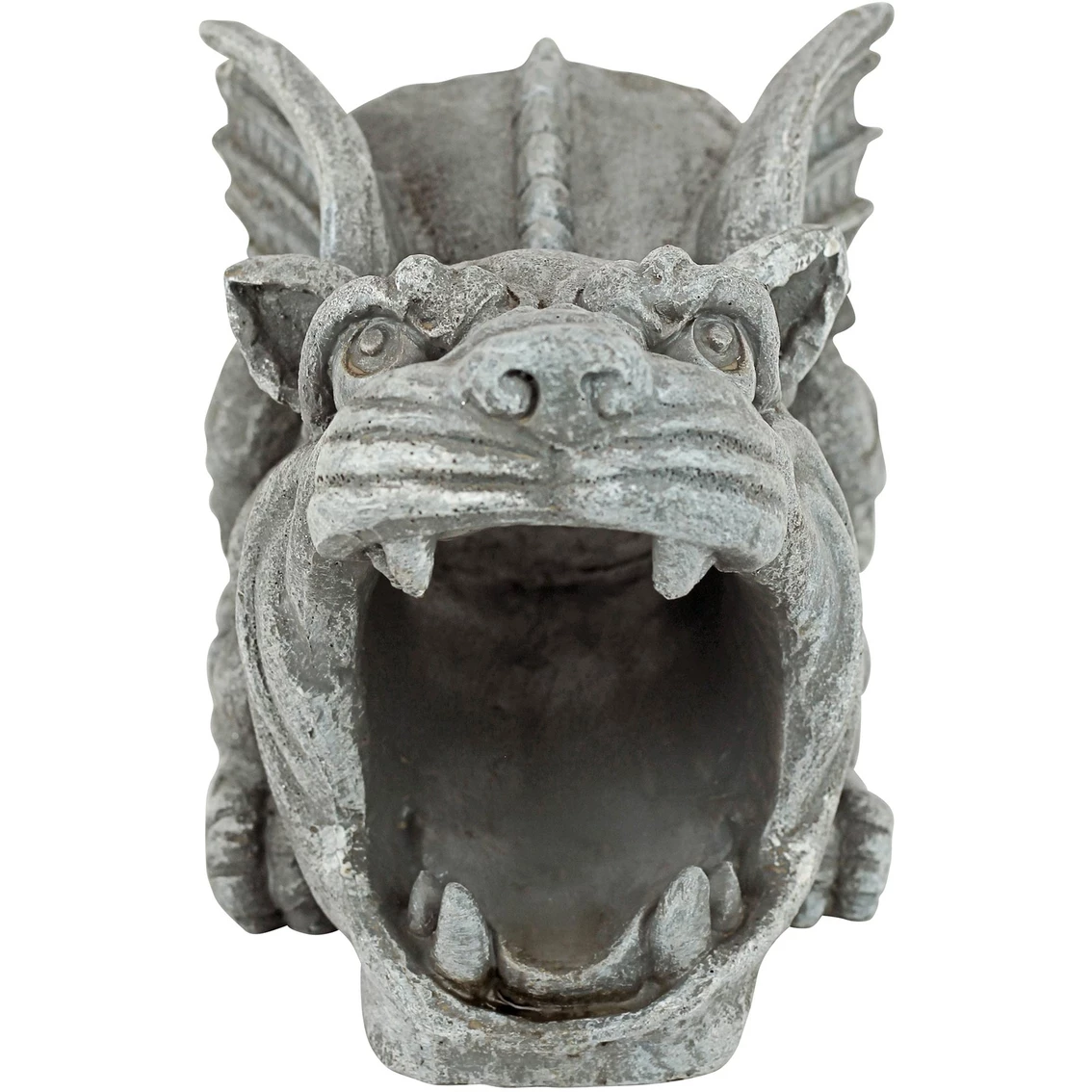 With wide-open mouths to steer water from your downspouts onto your lawn (and keep it from damaging your foundation), these gutter guardians splash happily as some of the most decorative architectural art we’ve seen! Cast in quality designer resin to capture Gothic sculptural detail, from scaly skin to wide eyes, these Design Toscano exclusives are as fun as they are functional. (Fit standard rectangular downspouts up to 2.5 in. x 3 in.) Measurements: 10.5 in. W x 5.5 in. D x 6.5 in. H. Weight: 4 lbs.