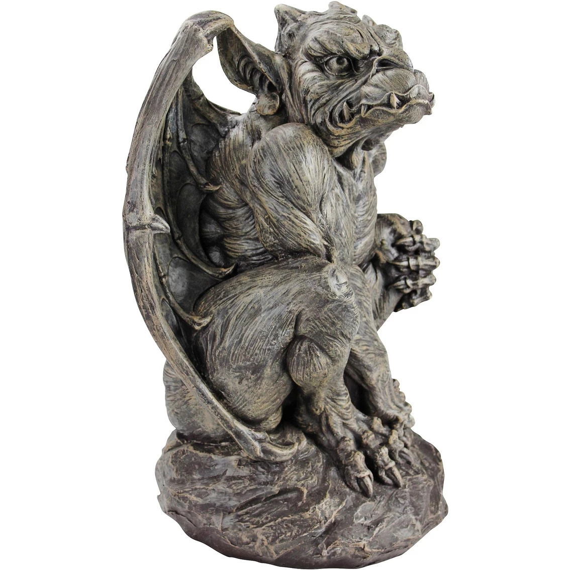With bat-like wings, threatening jaw and flared nostrils, the Design Toscano two-foot-tall Gothic sentinel is ready to pounce on unsuspecting predators to your home or garden! Following the legendary European heritage of gargoyle sentries, artist Manchester has chiseled Silas with muscular haunches and spiny talons, then cast him in quality designer resin to capture every detail available to guard your home or garden.