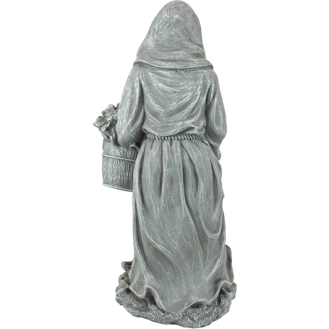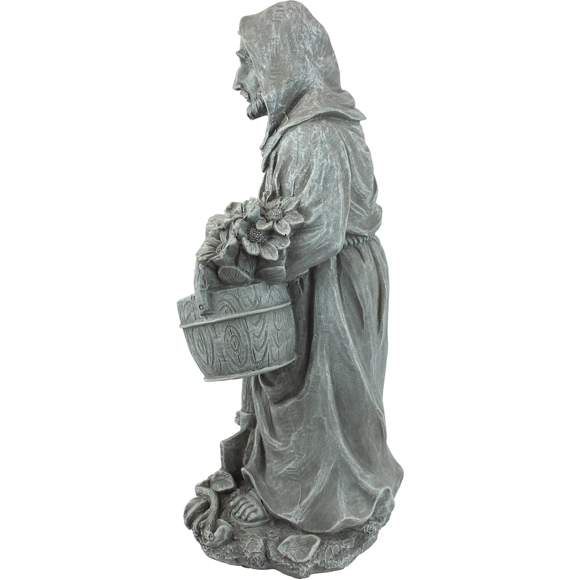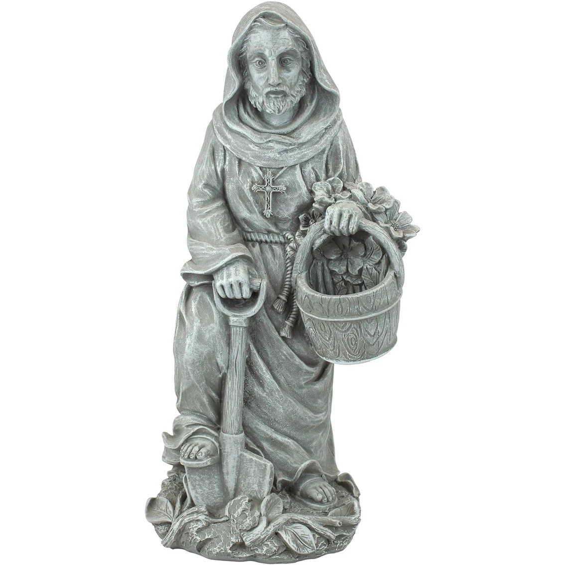 Who couldn’t use a little spiritual help in the garden? Benevolent St. Fiacre, Patron Saint of Gardeners, is now represented in a Design Toscano-exclusive garden sculpture. While living in France, St. Fiacre petitioned the bishop for land where he could grow a healing herb garden. The bishop promised Fiacre as much land as he could entrench in a day. Fiacre then paced the perimeter of the land he desired, dragging his spade behind him. Wherever the spade touched, trees were toppled, bushes uprooted, and the soil was entrenched. This miracle of a garden became a place of pilgrimage for those seeking healing. This spiritual gardener figurine is cast in designer resin to add a meditative and miraculous presence to your own Eden. Another quality Toscano religious garden statue!