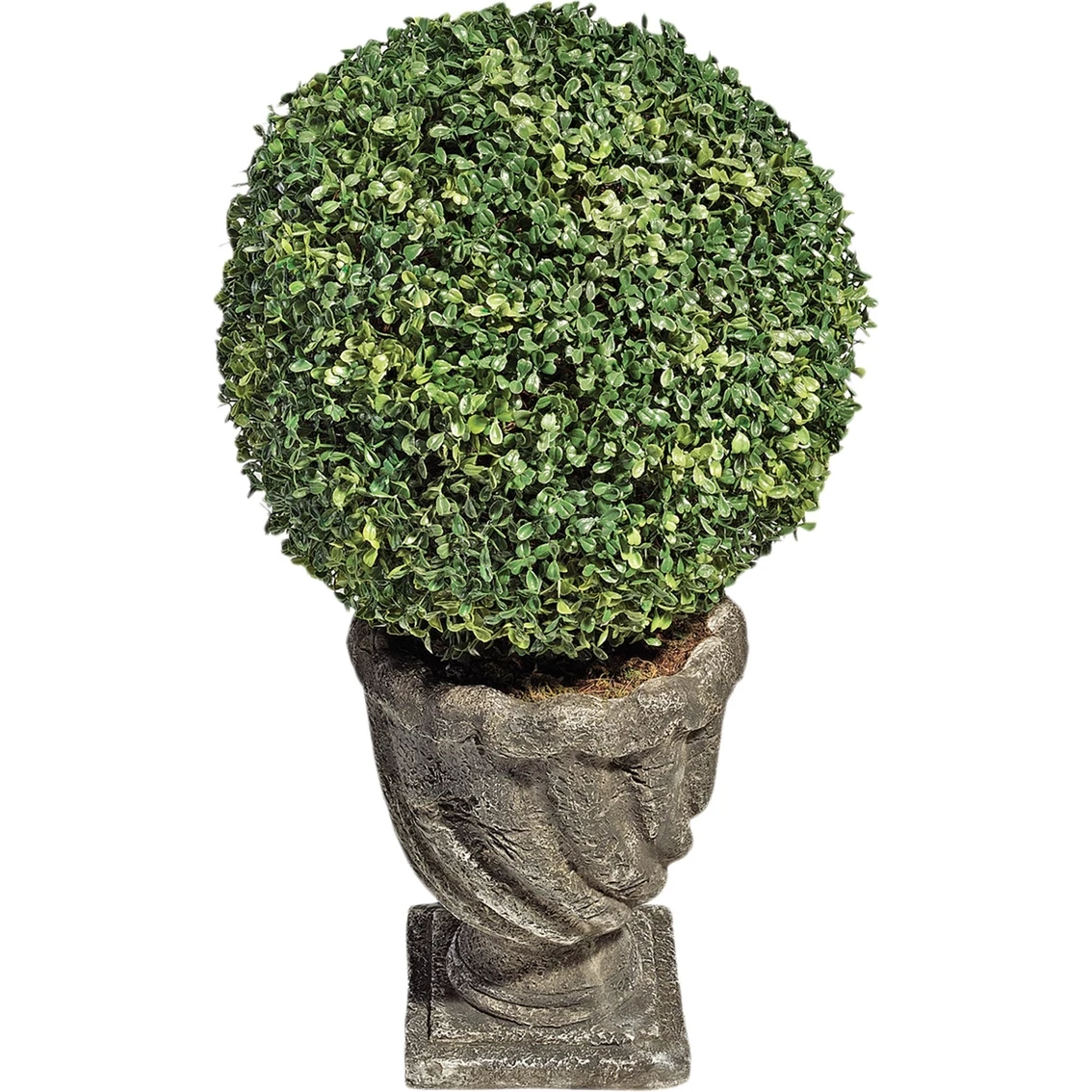 Dense, faux boxwood foliage fools the eye in this hand-crafted, everlasting topiary that never need to be watered or pruned! This Toscano exclusive Boxwood Ball topiary boasts lush foliage and is set in exquisite, quality designer resin basin with an aged stone finish for home or garden use.