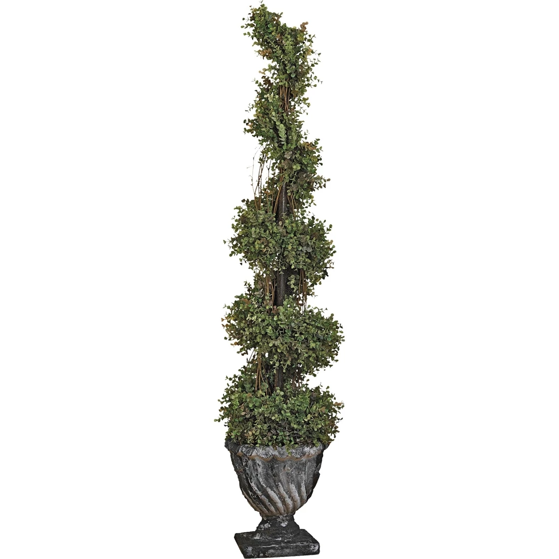 Dense, faux evergreen foliage fools the eye in this hand-crafted, everlasting topiary that never need to be watered or pruned! This Spiral topiary curves upward to a pleasant point. A Toscano exclusive in the traditional European style, our spiral topiary is set in an exquisite quality designer resin basin with a pitted stone finish.