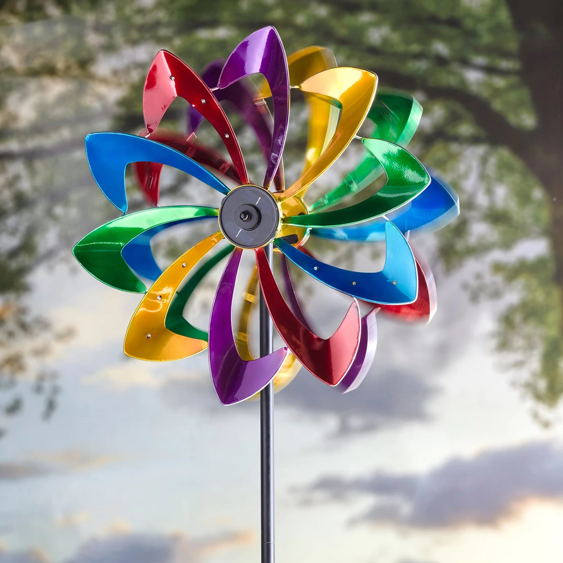 Best deal ๐ Evergreen 75 In. LED Solar Flower Wind Spinner โ