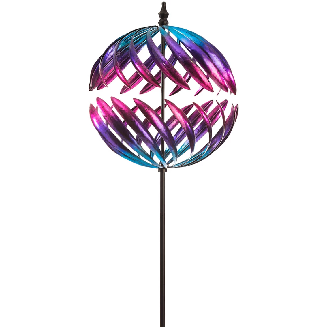 This 77-in. garden stake from Evergreen has a wind spinner with an ombre blue, purple, pink leaf globe that makes for a kinetic piece of art in any garden. Assembly is required. Comes with h-stake for stability. Model: 47M753.