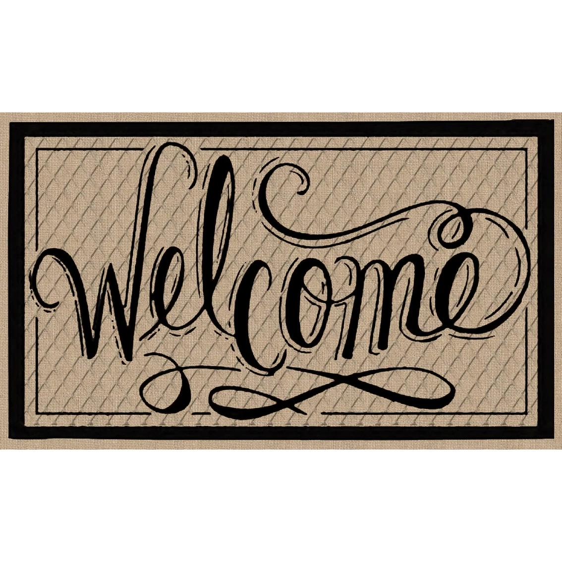 The Evergreen Welcome Script Embossed Mat is designed in fun script lettering. The deign adds a fun and inviting flare for visitors and guests. Model: 41EM2384.