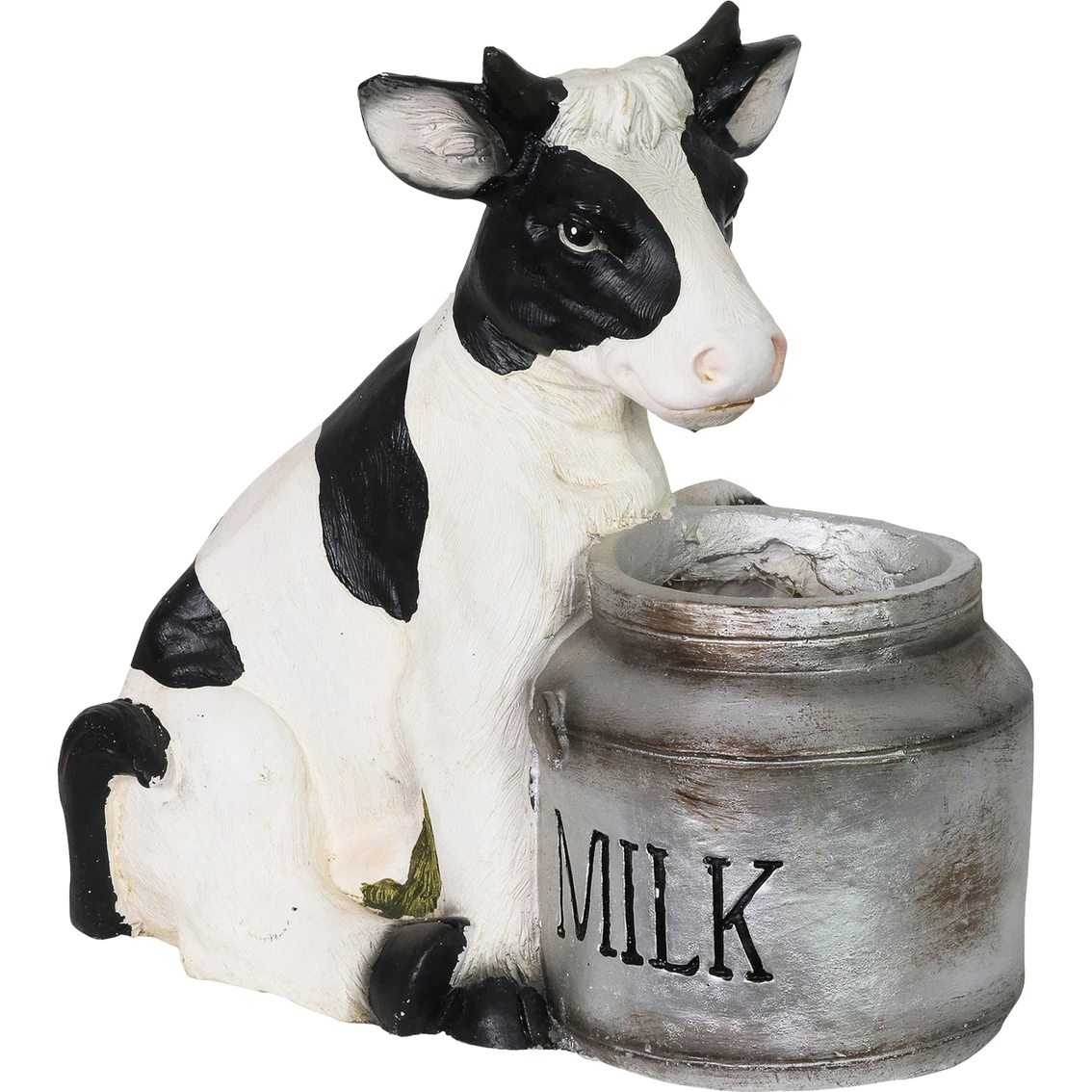 Charming and whimsical Exhart Farm Animal Pail Planter. An endearing cow and her classic metal looking milk pail make a whimsical planter for your home. Just add your choice of plant, herb or flower for a personal touch. You’ll enjoy this beautifully hand painted planter for years to come. 15 inches tall. Model: 18835-RS.