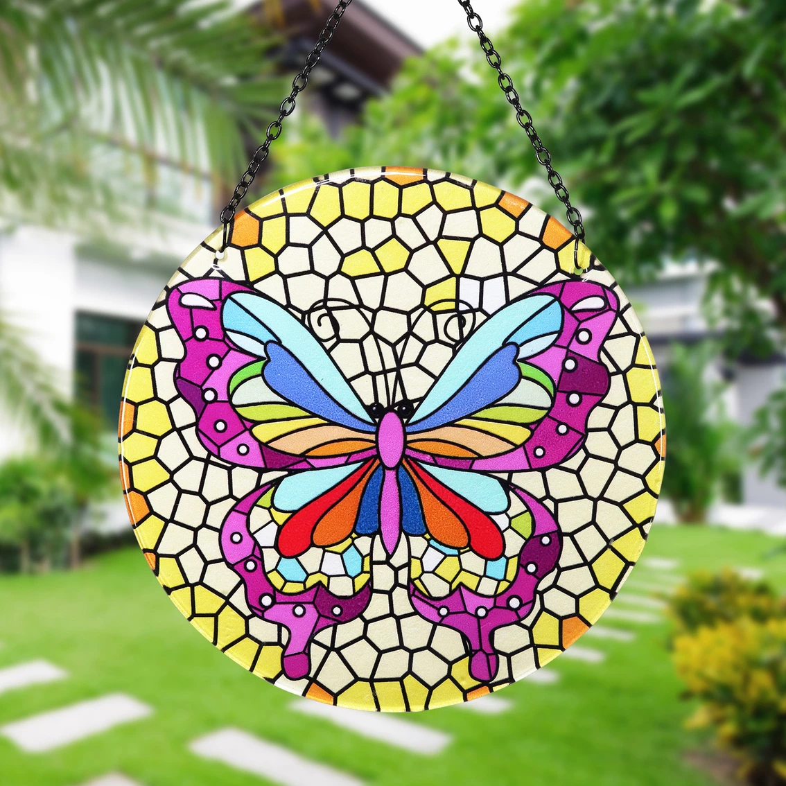 Hang this stunning 10 in. Mosaic Butterfly Suncatcher and instantly be dazzled by the bright and beautiful design. This artwork from Exhart is crafted of durable glass fashioned to resemble the elegance of stained glass. Makes a wonderful gift adding color and life to any decor! Model: 18951-RS.
