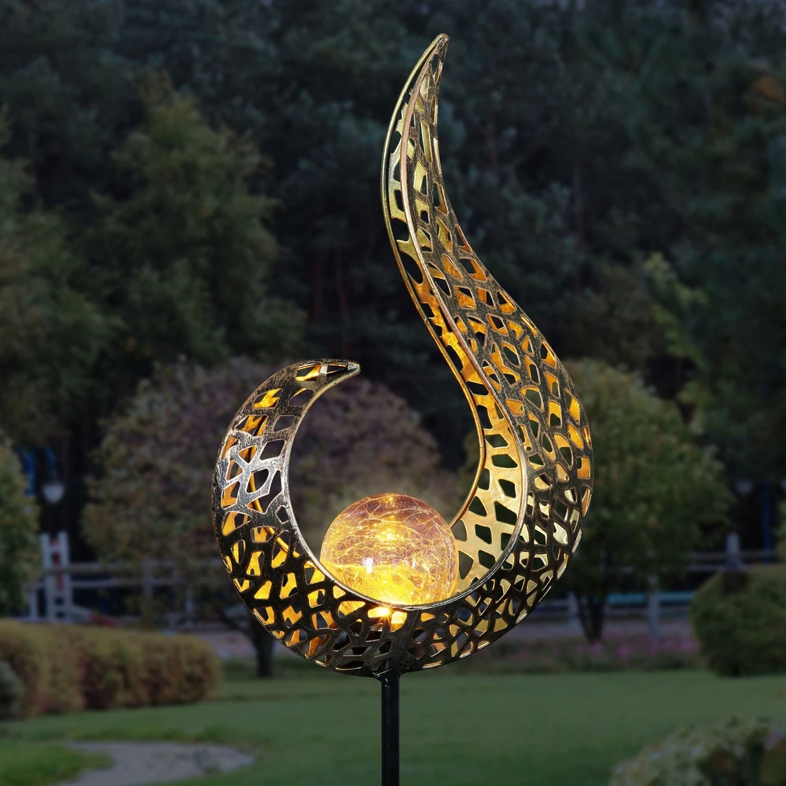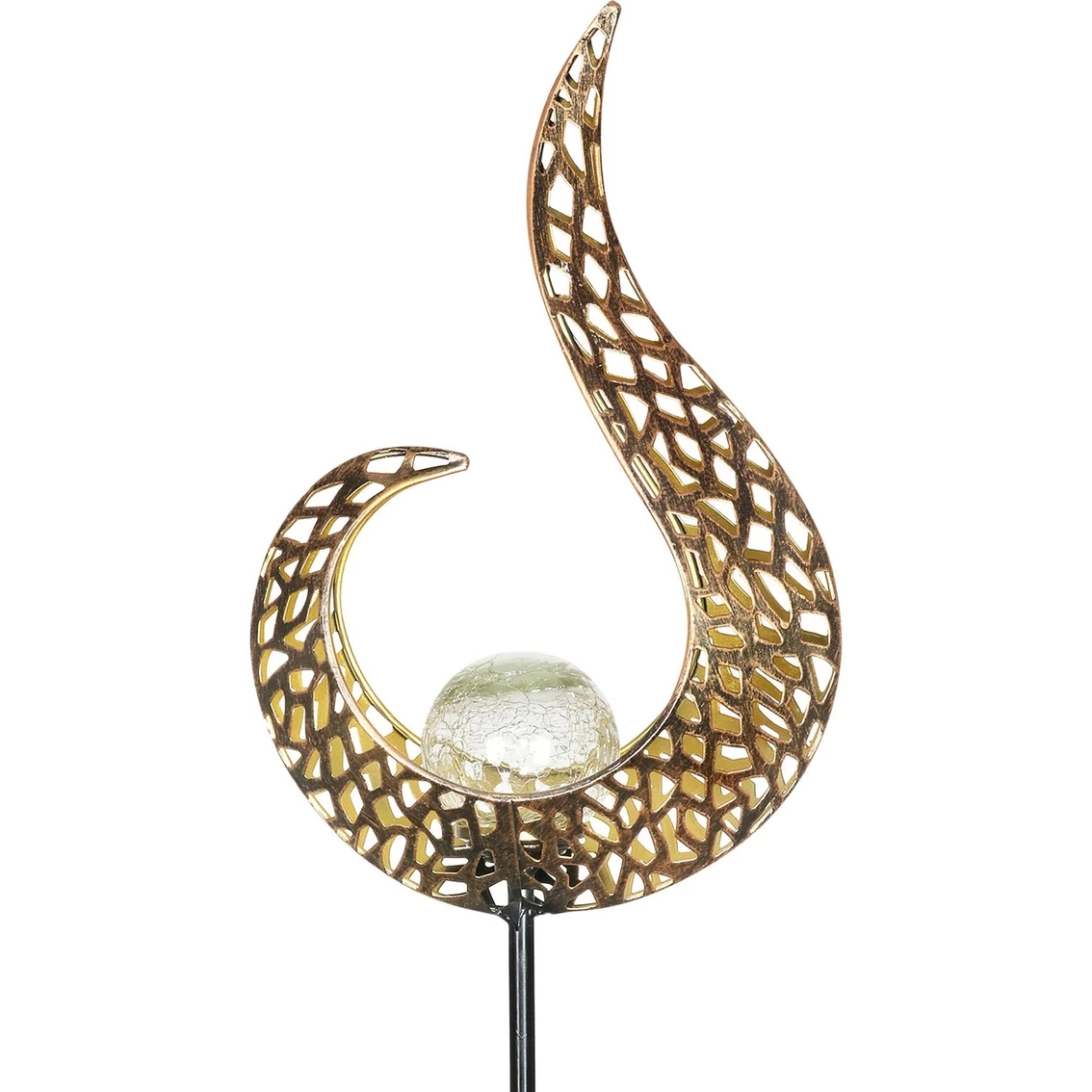 Light your garden with the Exhart Solar Half Flame Metal Filigree Torch Garden Stake! Beautifully designed metal in the shape of a flame illuminates with solar powered LED light. Enjoy the glow that automatically begins at dusk from the center of this beautiful garden art.