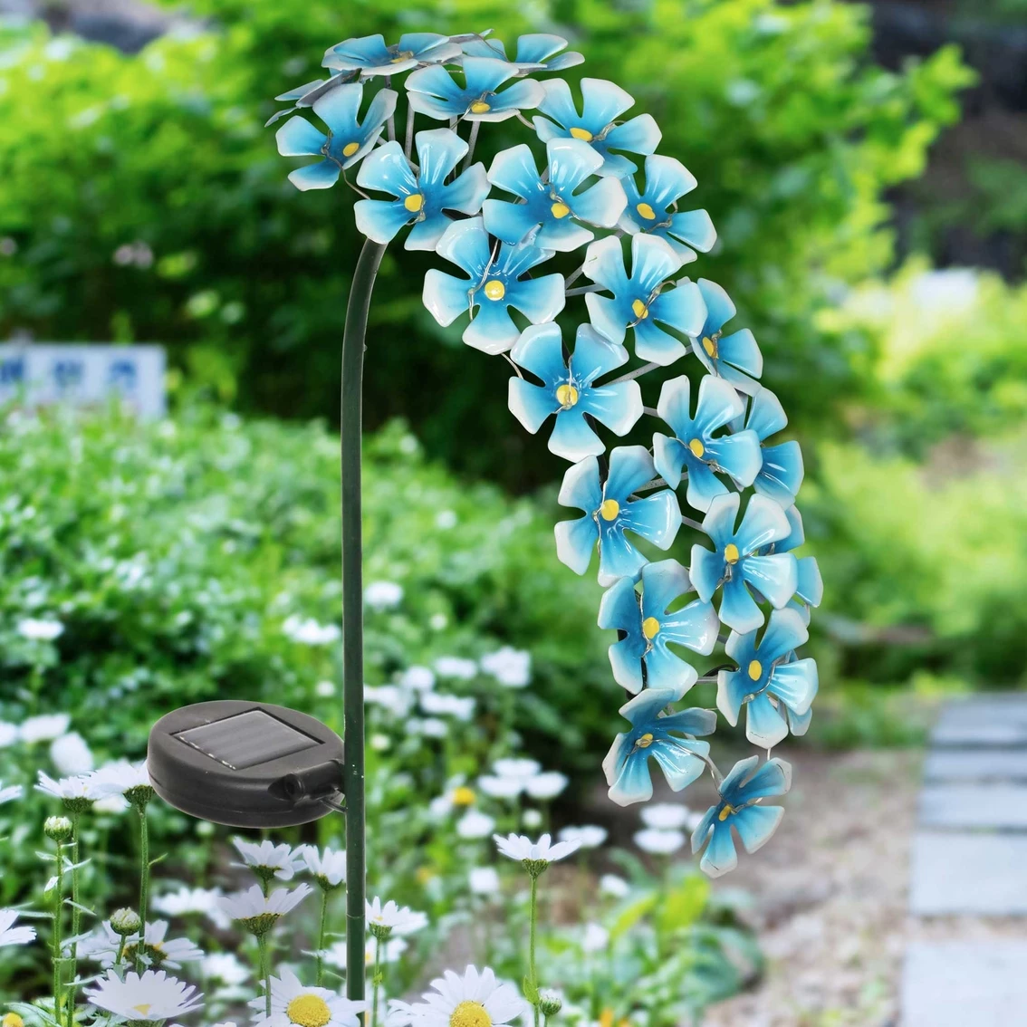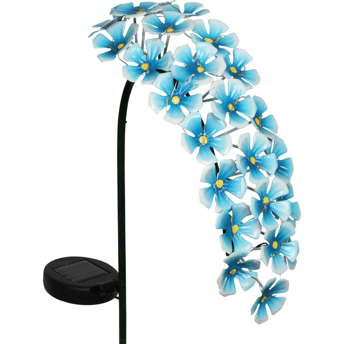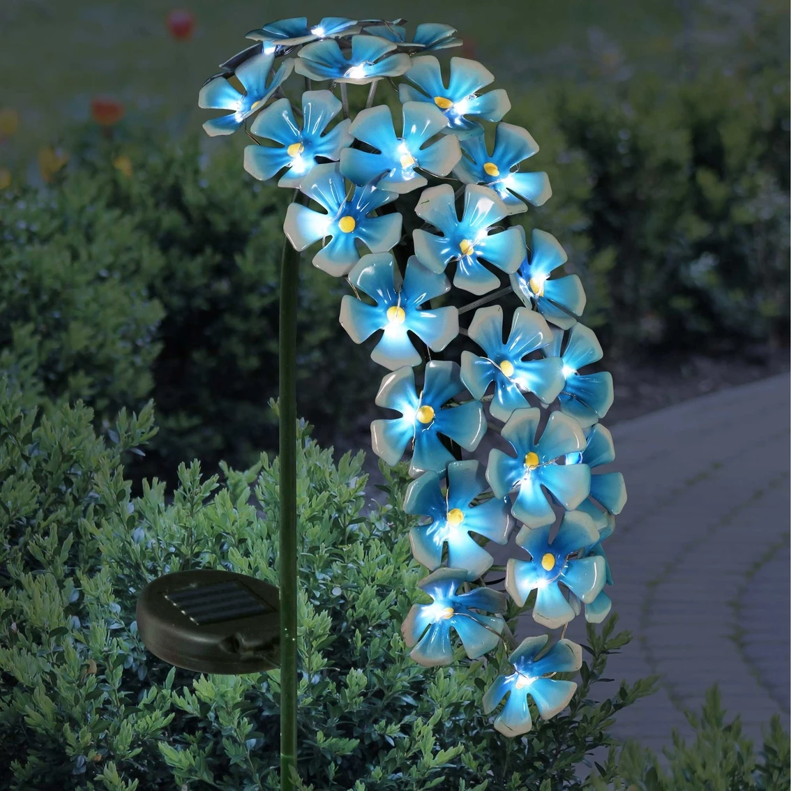 Turquoise cascading flowers illuminate from within each and every bloom on this Solar Flower Garden Stake by Exhart. Beautifully crafted from metal, this 11 x 28 in. stake has 24 LED lights and is exquisitely hand-painted to add a touch of color and elegance to any garden! Makes a fabulous gift that’s always in bloom. Model: 14184-RS.