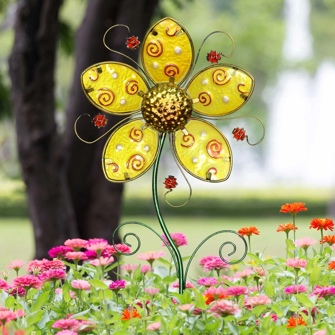 Bursting with color, this Whimsical Yellow Glass Flower Garden Stake from Exhart adds instant personality to your garden. Beautifully constructed from glass and metal to withstand the outdoor elements. Hand painted with beautiful details, this stake is a true piece of art in your garden.