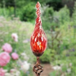 Hot Sale ❤️ Exhart Solar Hand Blown Pearlized Blue Glass Spiral Flame Garden Stake ⭐