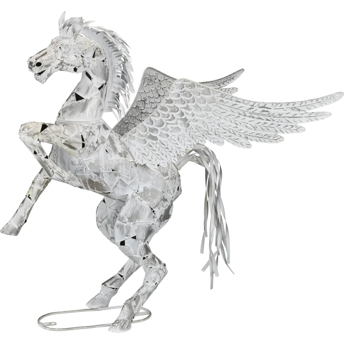 Pegasus is a mythical winged divine horse and one of the most recognized creatures in Greek mythology. Create a world of magic in your garden by adding two or more of Regal Arts mythical garden decor. This piece is built with detailed metal work and rustic white finish.
