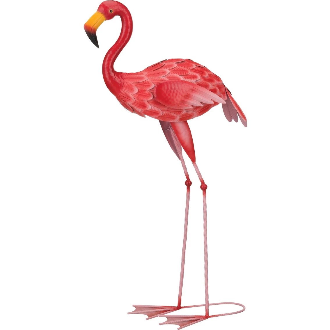 Bright and cheerful Flamingo Decor even made better as this rocks front and back as the wind blows. The Regal Arts Rocker Flamingo Decor is the perfect accent to your patio, yard, poolside or garden. Available in two sizes, these flamingos are brightly painted with a warm finish. Ground stakes include to help stabilize these birds in the ground.