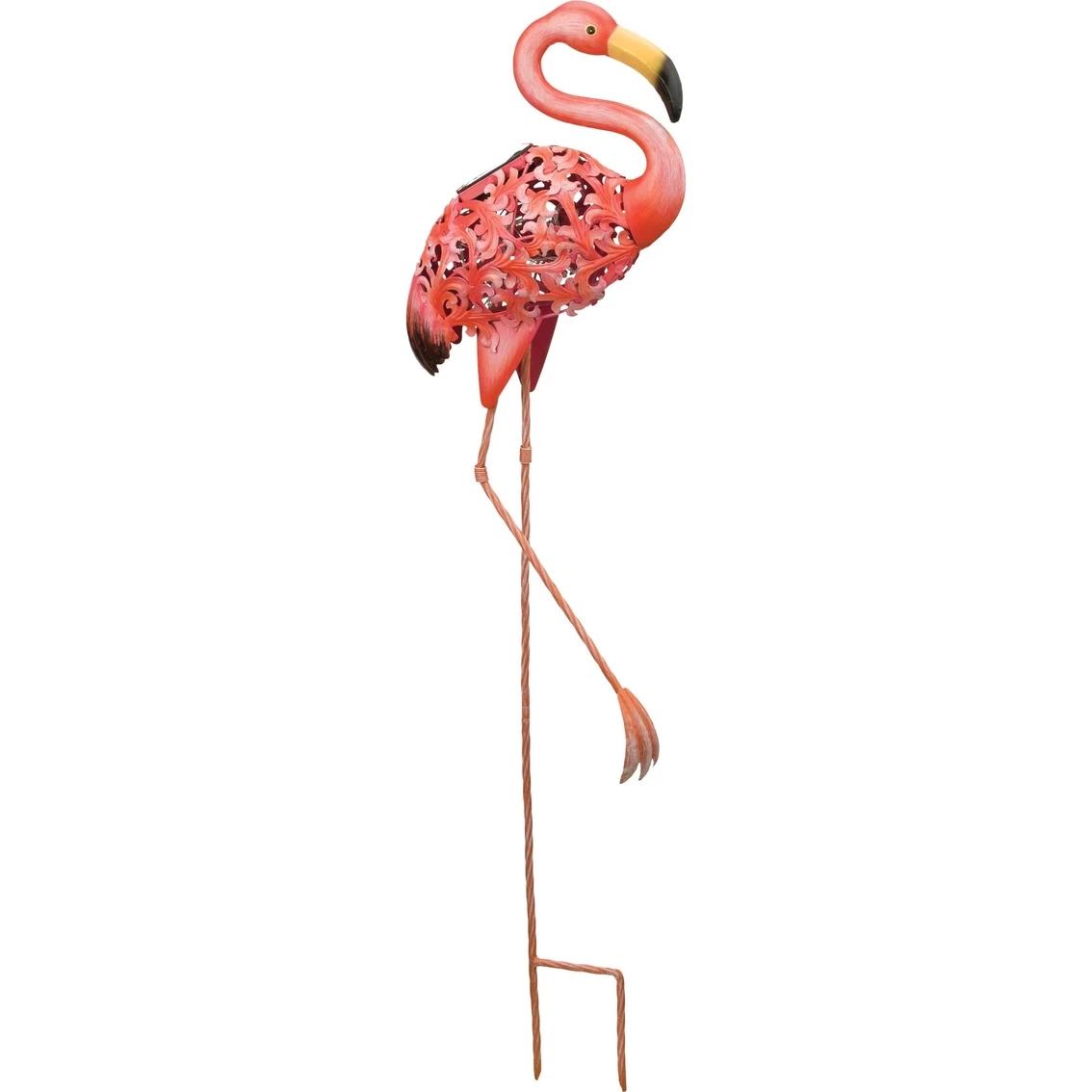 Refined and elegant, this handcrafted metal Solar Flamingo Stake from Regal Arts brings a serene glow to nighttime in the garden. Bring a touch of elegance to your garden with this hand-painted Solar Bird Stake — Flamingo. A solar panel on the back of each bird powers a string of LED lights that glow through the beautiful scroll cut-outs. Available in 4 popular bird styles. Model: 11536